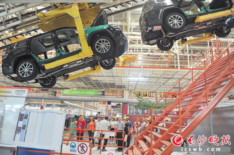 广汽菲克总装车间汽车生产线很有力量感哦。