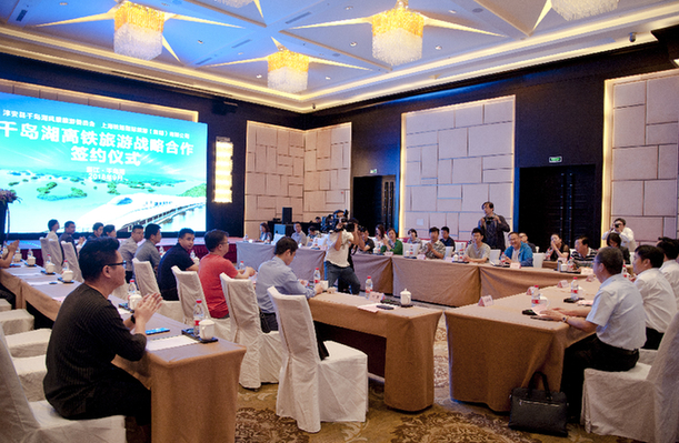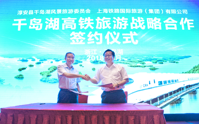 战略合作涵盖服务设施提升、宣传氛围营造、市场渠道铺设等各大层面,上铁国旅将发挥其在国际旅游服务和铁路旅游资源等方面的绝佳优势,为杭黄高铁千岛湖站千岛湖智慧旅游展示与体验中心项目建设、“千岛湖号”高铁品牌列车冠名、高铁专列市场合作等提供更加精准、高效的服务与支持。