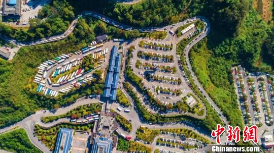 10月4日,湖北恩施大峡谷停车场航拍图。湖北省旅游委供图
