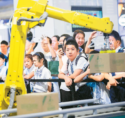 9月21日,来自杭州上海世界外国语小学六年级的96名小学生组团来到2018杭州云栖大会现场,体验和观摩展区内的“黑科技”。