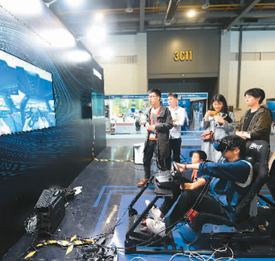 10月20日,2018中国(杭州)国际电子商务博览会开幕。图为参观者在体验VR赛车。