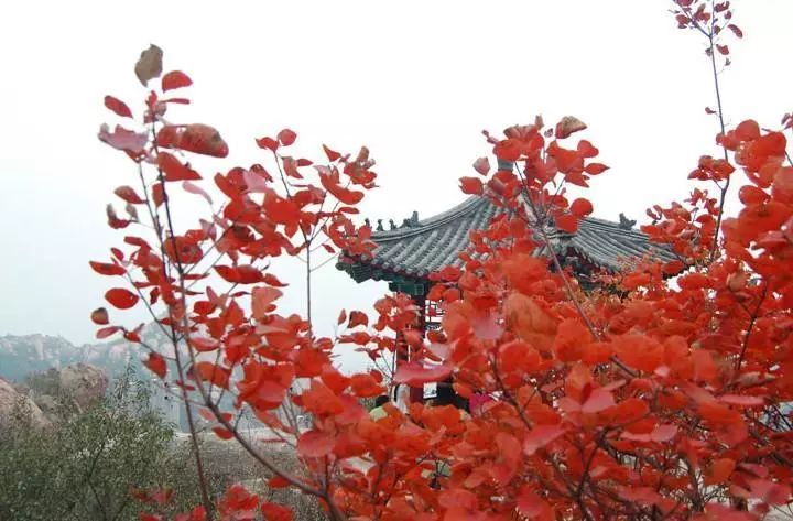 秋天的鹫峰是最美丽的,红叶遍山、硕果满枝、色彩斑斓。银杏、黄栌、火炬、五角枫……在秋日阳光的装饰下,红得娇艳,黄得明丽,绿得柔和,五彩缤纷,漫山遍野。10月中下旬鹫峰的彩叶就进入观赏期,11月上中旬为观赏的最佳时期。