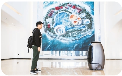 在阿里的未来酒店里,机器人正在服务客人。飞猪供图
