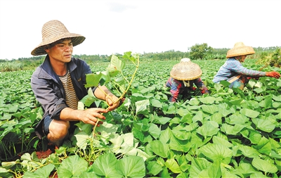澄迈桥头推行“党建+扶贫”,帮助儒头村贫困村民王国军发展地瓜苗种植产业。通讯员 王家专 摄