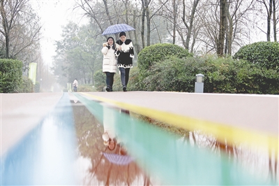 在零星雨点中畅快呼吸清新的空气,抿一口醇香的咖啡,漫步在桂溪生态公园就是如此的惬意。昨日下午,当记者再次来到桂溪生态公园时,细雨中的公园更多了几分婀娜之姿,远处几名工作人员正在忙碌的进行草坪修整。作为锦城绿道项目生态本底最好、启动最早的点位,桂溪生态公园面积约1800亩,并以天府大道为界,划分为东、西片区,目前已经建成开放并成为了成都的网红打卡地。