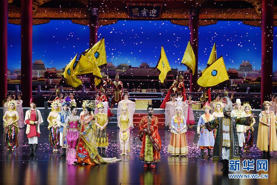 4月2日晚,演员在敦煌大剧院表演舞剧《丝路花雨》。 近日,中国经典舞剧《丝路花雨》旅游版2019年演出季在甘肃省敦煌市敦煌大剧院启动。每晚一场的常态化演出让前来敦煌的中外游客在领略当地风光的同时,能够近距离感受古老敦煌的文化魅力,旅游版《丝路花雨》已成为敦煌“文旅融合”的一张名片。 据了解,《丝路花雨》取材于敦煌莫高窟壁画艺术,自1979年首演至今,已在40多个国家和地区演出2800多场,观众超过400万人次。 新华社记者 陈斌 摄