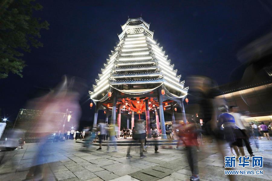 7月2日,游客在丹寨万达小镇游览。 2017年7月,贵州省丹寨县的丹寨万达小镇对外开放。两年来,丹寨万达小镇游客接待量持续增长,为700余名贫困户提供就业岗位,有力助推了丹寨县的脱贫攻坚工作。 新华社记者 欧东衢 摄