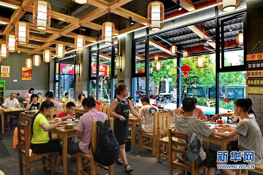 8月21日,游客在武夷山市兴田镇南源岭村农家饭庄用餐。新华社记者 张国俊 摄