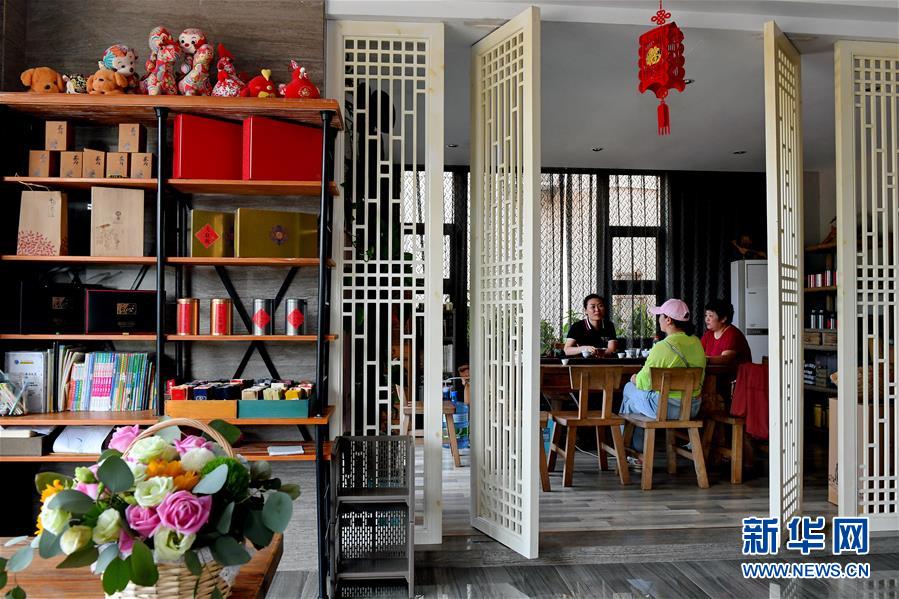 8月21日,武夷山市兴田镇南源岭村村民郑霞(左)在自家开办的民宿里招待游客。新华社记者 刘莲芬 摄