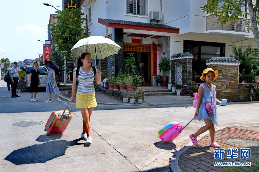 8月21日,一对母女在武夷山市兴田镇南源岭村结束度假准备离开村庄。 新华社记者 刘莲芬 摄