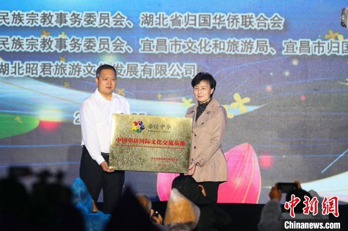 当天,兴山昭君村获授由中华全国归国华侨联合会颁发的“中国华侨国际文化交流基地”匾牌。