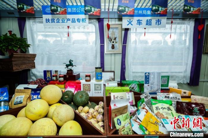 图为“环西部火车游”品牌列车上展销西北贫困县区农副特产。(资料图)甘肃省文旅厅供图