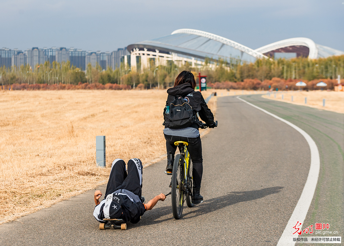 8月28日,市民在位于西城区的西海湿地公园休闲。 近年来,北京因地制宜地开展公园绿地建设,扩大城市的绿色空间,在北京城市核心区和中心城区,通过留白增绿、见缝插绿,改善了百姓身边的生态环境。