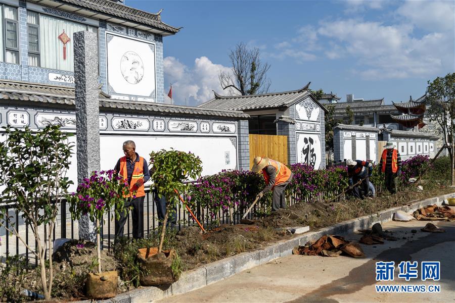 11月9日,工人在洱海生态廊道古生村段的绿化带工作。 新华社发(陈欣波 摄)