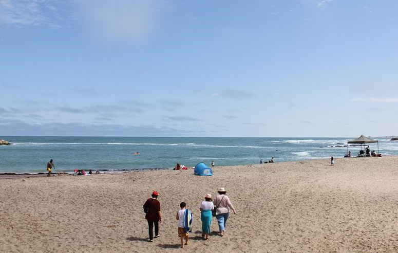 10月17日,游客走在纳米比亚海滨城市斯瓦科普蒙德的海滩上。 旅游业是纳米比亚的支柱产业,纳米比亚从9月开始实施旅游复兴计划,旅游业开始逐步复苏。