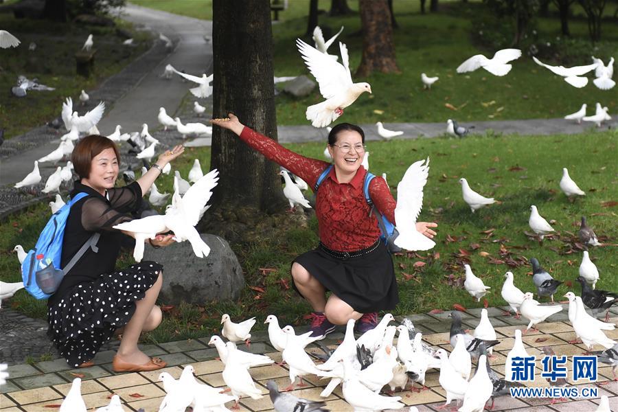 5月27日,游客在浙江省宁波市奉化区滕头村农家风情生态旅游区喂鸽子。当日,浙江省宁波市奉化区首届农业嘉年华启幕活动在滕头村举行,活动集农事节庆与农业生产、休闲、示范等于一体,推出多条体验线路,将绿色农业与旅游资源有机结合,促进乡村振兴。新华社记者 黄宗治 摄