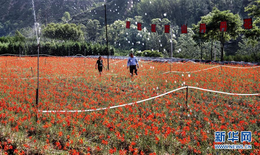郝和武夫妇在对山丹丹花种苗基地进行田间管理(6月26日摄)。新华社记者陶明摄