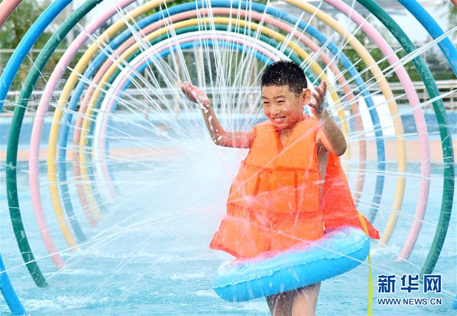 7月23日,一名儿童在河北省邯郸市涉县一水上乐园戏水。 大暑时节,人们用各种方式消暑纳凉,乐享清爽夏日。 新华社发(胡高雷 摄)