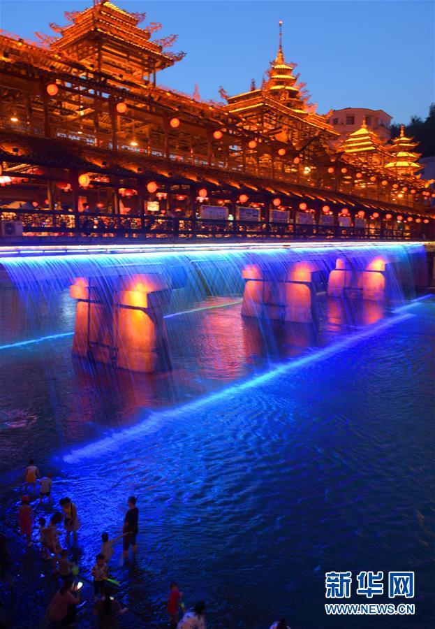 7月23日,人们在湖北省宣恩县贡水河边玩耍。 大暑时节,人们用各种方式消暑纳凉,乐享清爽夏日。 新华社发(王俊 摄)