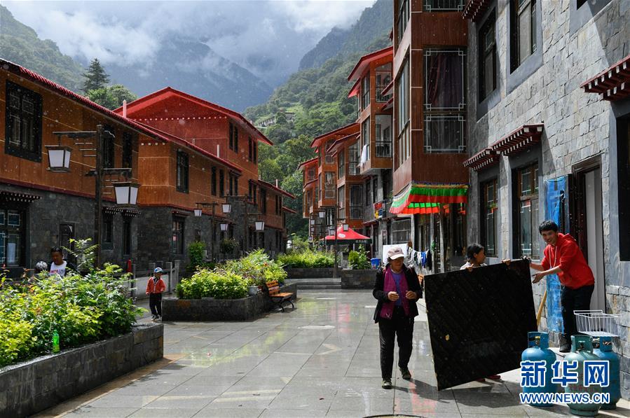这是勒门巴民族乡新型小城镇一角(7月24日摄)。