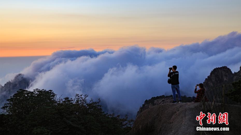 雾浪滚滚,引得游客伫立山头拍照。叶永清 摄