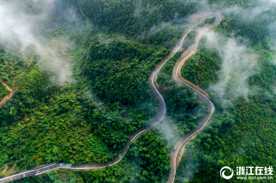 浙江在线9月28日讯(浙江在线拍友 卢宣新 摄)2018年9月27日,浙江省武义县柳城畲族镇至西舒村的公路,在云雾的衬托下,更显美丽、壮观。