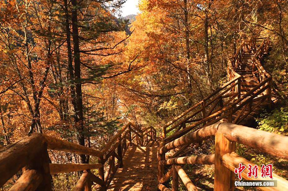 四川黑水沙石多乡干斯坝村网红树景点栈道。黑水宣传部供图
