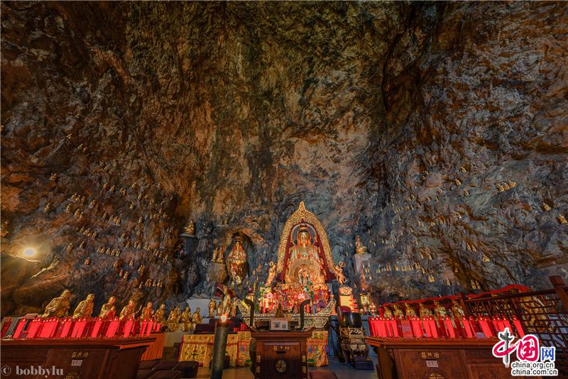 而白云庵之上的观音洞则更是令人称奇,“观音洞”深广各40米,高约100米,为雁荡山第一大洞。洞内倚崖建有楼房10层。从洞门口拾级而上,要走377级石阶,方可到达最高层的大殿。