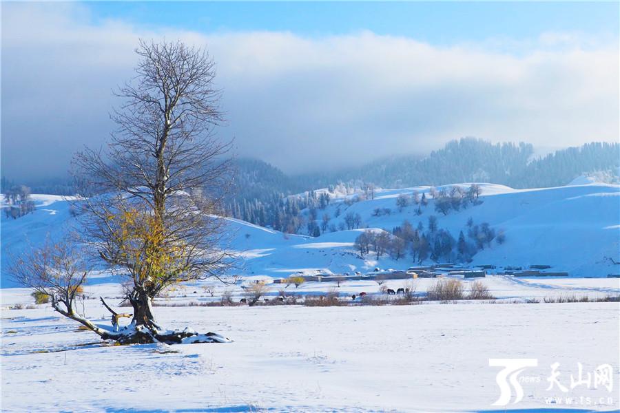 初冬那拉提展开雪原水墨画卷