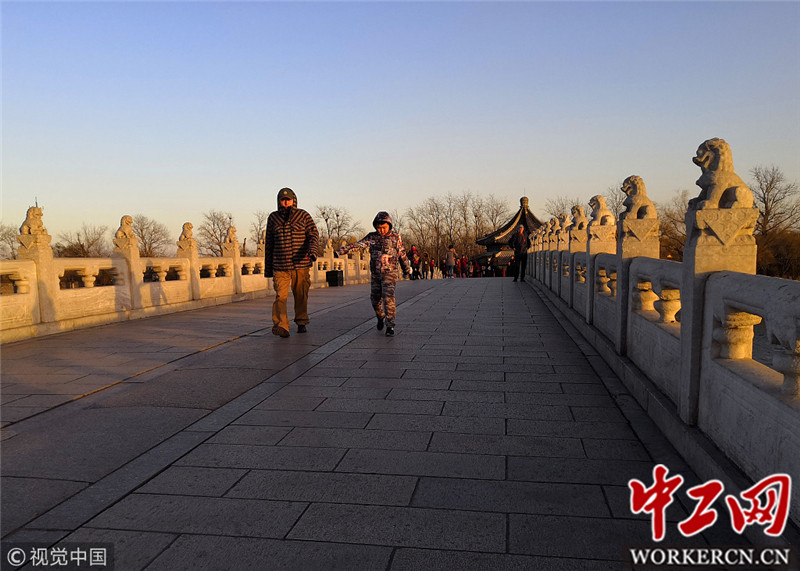 北京:颐和园冬日再现“金光穿孔”美景 吸引游客”抢鲜”观赏拍照