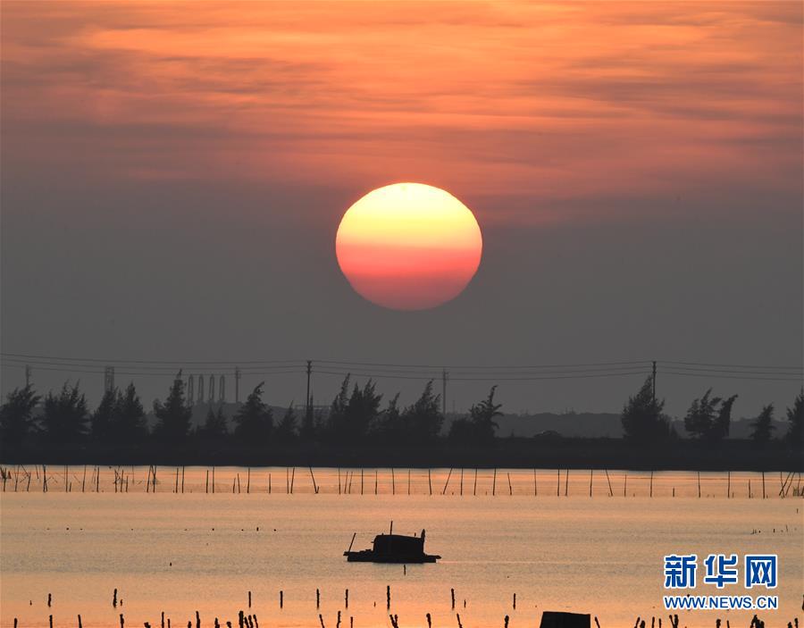 这是落日余晖映照下的白鹭栖息地(12月5日摄)。 新华社记者 张爱林 摄