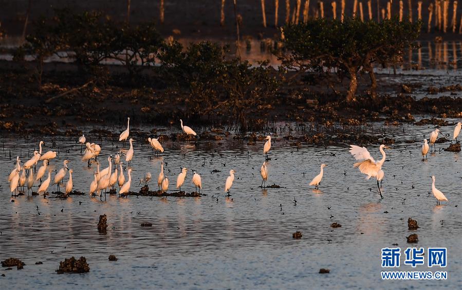 这是一群白鹭在茅尾海浅滩处觅食、休息(12月5日摄)。 新华社记者 张爱林 摄