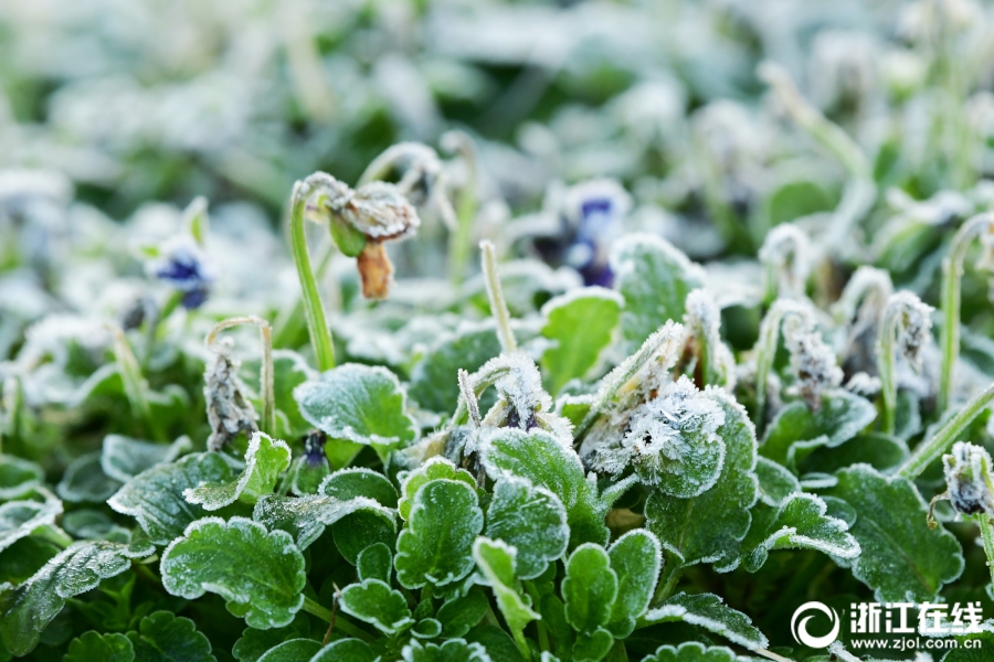 12月18日,西湖景区的草坪披上了一层浓霜。由于暖湿气流相对活跃,杭城昼夜的温差也较大。(浙江在线拍友 里尔 摄)