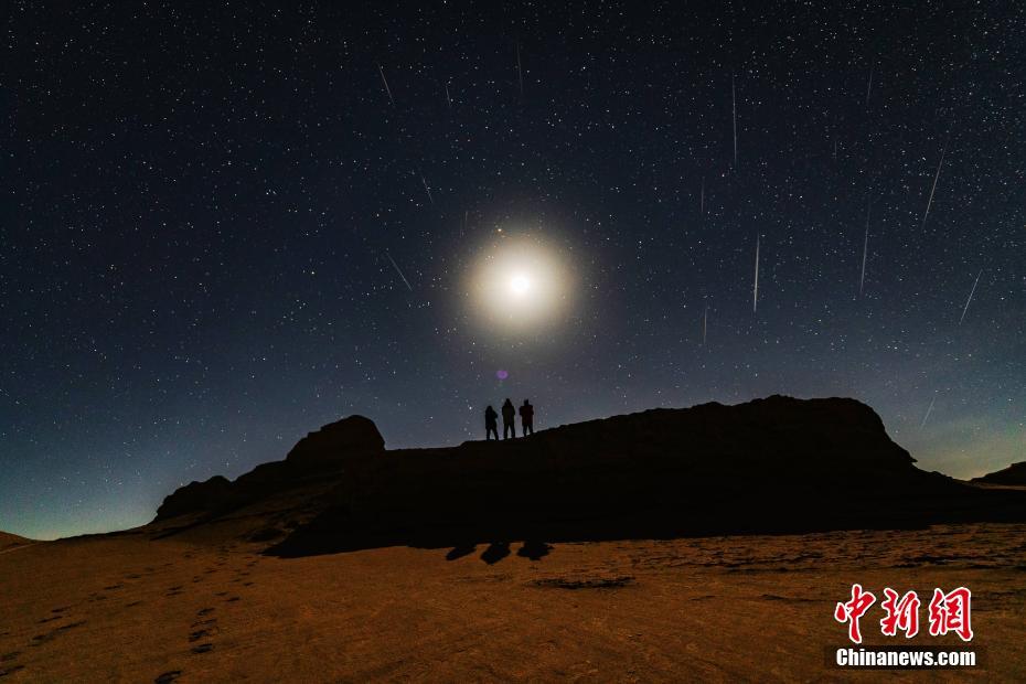 青海雅丹魔鬼城上演“流星与金星”
