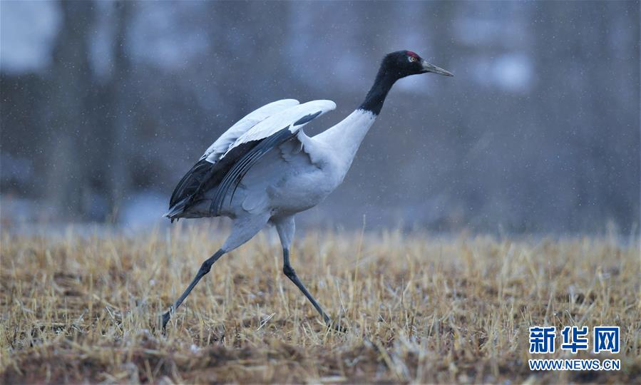 12月18日在拉萨市林周县境内拍摄的黑颈鹤。 新华社记者普布扎西摄