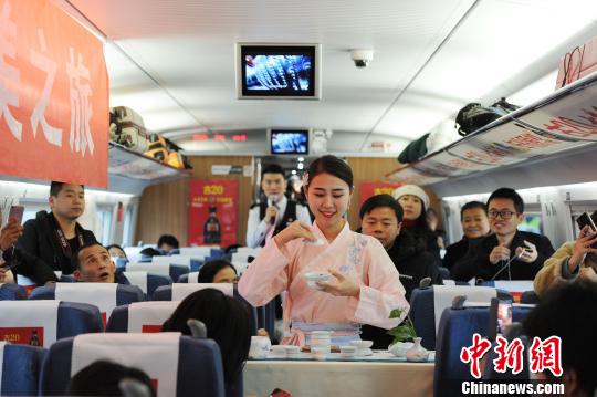 12月25日,杭黄线开通首日,在安徽合肥南开往千岛湖的G9474/1次列车上,中国铁路上海局集团有限公司合肥客运段为旅客们献上“诗画杭黄,皖美之旅”文艺表演。