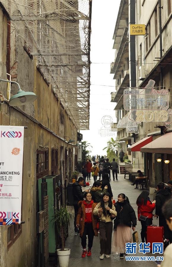 1月1日,游客们在重庆鹅岭二厂文艺街区内游览。