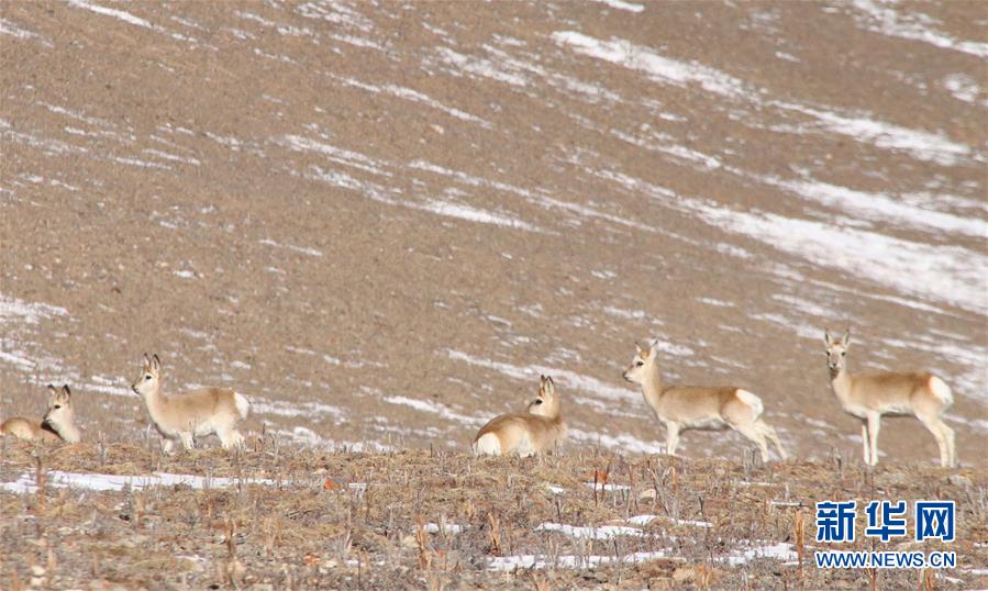 1月12日,一群藏原羚在行进途中。新华社发(李军摄)