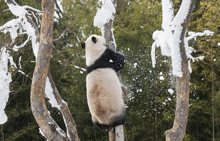 1月15日,在湖南张家界武陵源黄石寨景区,粟松云顺着绳索滑降到岩壁上。