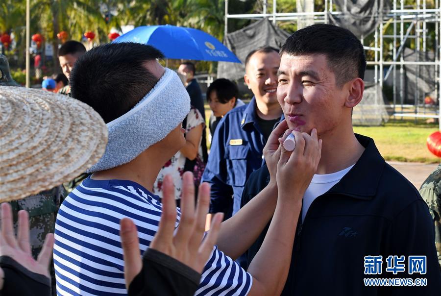 2月5日,人们在游园活动现场参加“为你添彩”游戏。 当日是农历大年初一,海南省三沙市在永兴岛举行新年游园活动。 新华社记者 杨冠宇 摄