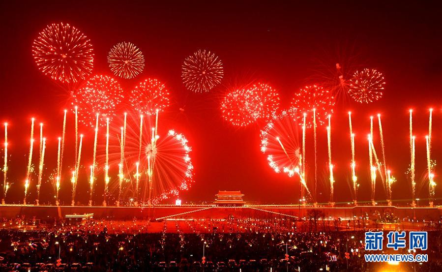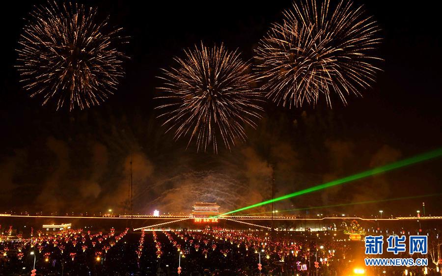 2月4日除夕夜,在河北省石家庄市正定县古城南城门,缤纷绽放的电子烟花将古城夜空渲染成了一幅色彩斑斓的画卷。 新华社发(陈其保 摄)