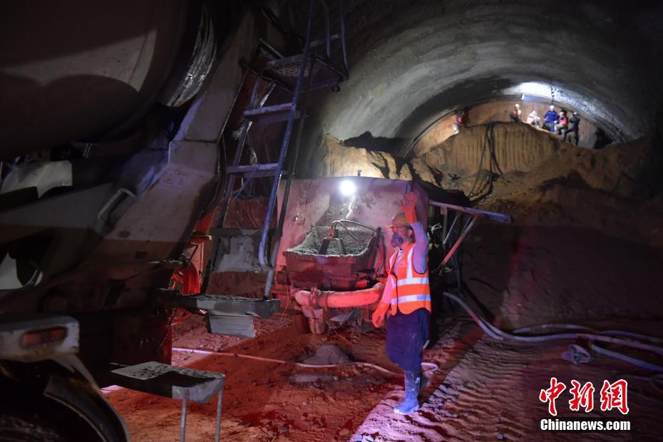3月4日至5日,记者走进赣深铁路中铁六局集团、中铁二十五局集团在建的桥梁和隧道施工现场探访。两局标段内共有91座桥梁、32座隧道。赣深铁路是中国“八纵八横”高速铁路网的重要组成部分之一,正线全长436.37公里,广东段全长301.8公里,设计时速350公里。赣深铁路贯穿赣州、河源、惠州、东莞、深圳五市,计划于2021年建成通车。图为中铁六局承建的长兴隧道内,建设者正在施工作业。 中新社记者 陈文 摄