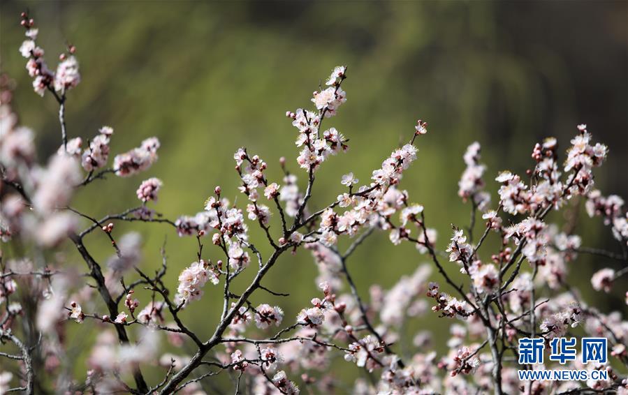 3月21日,在河北石家庄市平山县的天桂山拍摄的盛开的桃花。