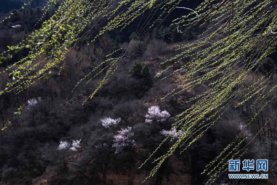3月21日,在河北石家庄市平山县天桂山,桃花与绿柳交相辉映。
