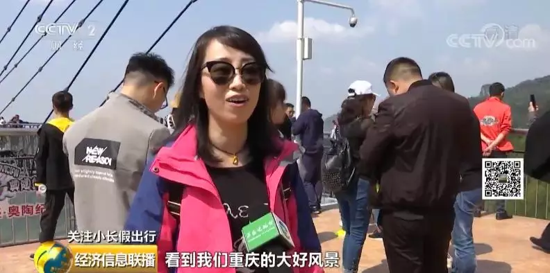 享受风景的游客激动地说:“从这里看上去非常刺激,从世界第一高空悬廊,看到重庆的大好风景,感觉非常棒。”