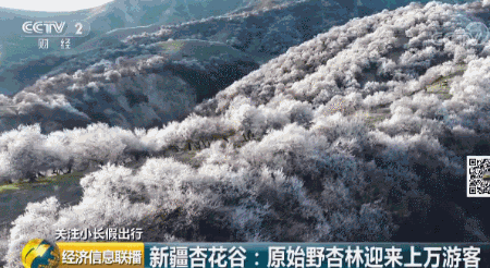 新源县吐尔根乡杏花谷,是一片中世纪遗留下来的最大原始野杏林,连绵不断的花海吸引了天南海北的游客纷至沓来。小长假第一天就接待了1.1万多名游客。