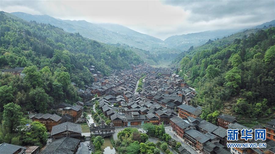 这是4月14日无人机拍摄的肇兴侗寨。谷雨将至,贵州省黔东南苗族侗族自治州黎平县肇兴侗寨处处春意盎然。 新华社记者欧东衢摄