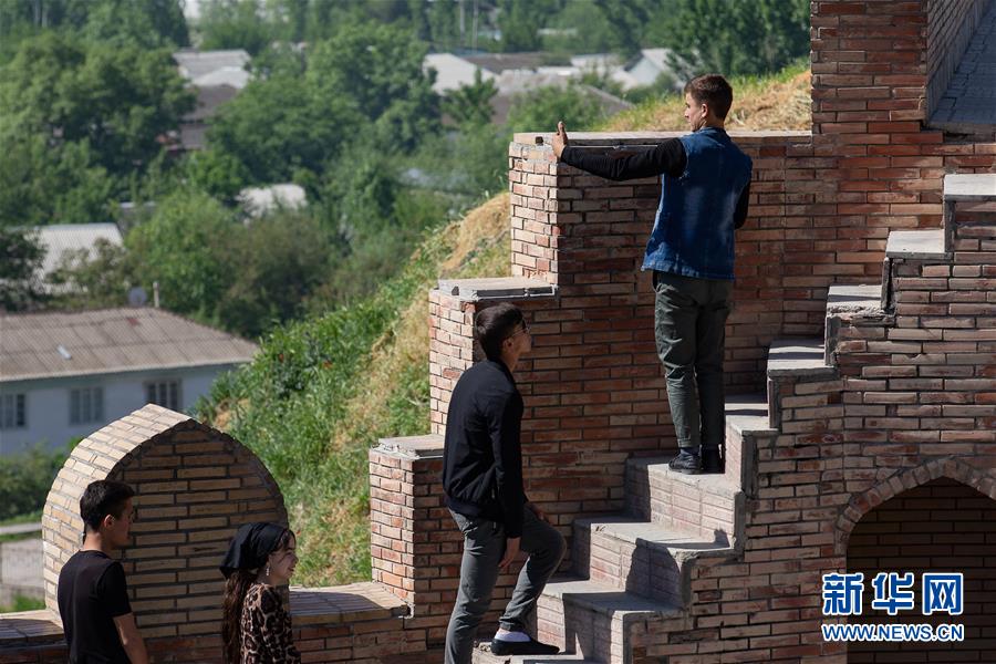 4月14日,人们在塔吉克斯坦首都杜尚别以西的吉萨尔城堡参观。