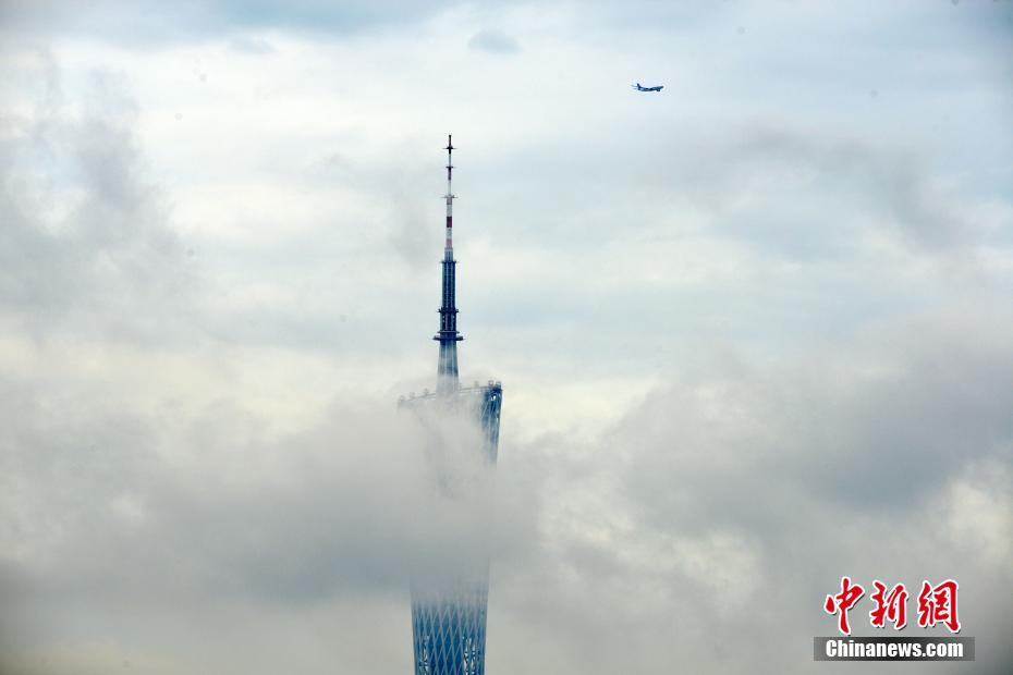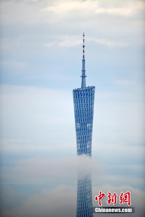 4月16日,广州塔“小蛮腰”被浓雾遮蔽。当日,广州雨后气温迅速上升,一改连日暴雨带来的凉意。中新社记者 姬东 摄