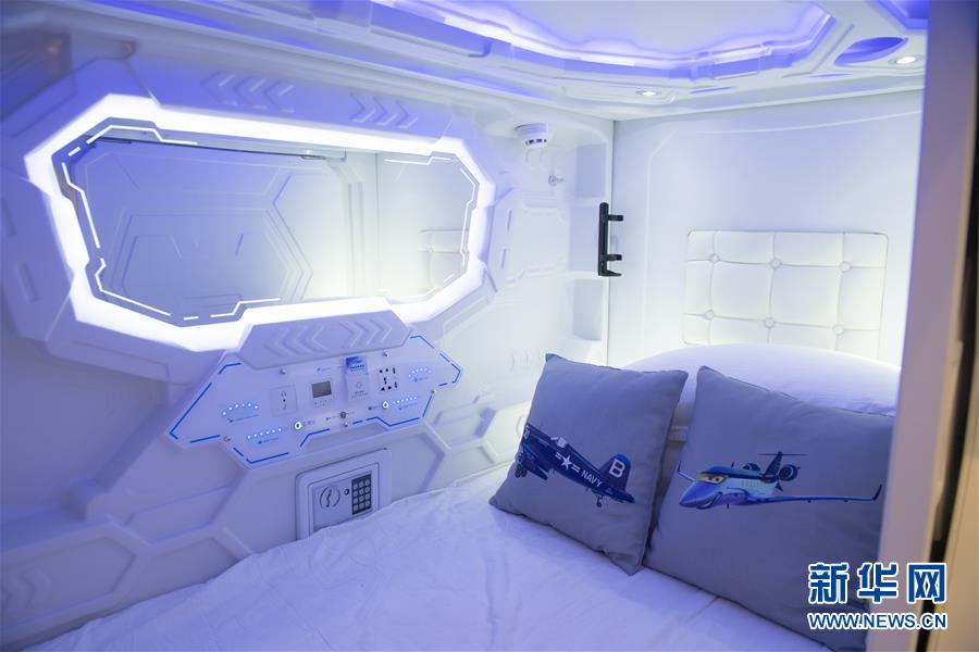 由工厂文化楼改建的航空主题酒店的“太空舱”(4月18日摄)。2013年以来,浙江省建德市重新规划破产闲置的横山钢铁厂厂区,将其纳入全国特色小镇——建德航空小镇中,着力推动航空休闲旅游发展,目前已完成核心建筑改造9.2万平方米,建成数字影院、咖啡吧、主题酒店等设施。2018年小镇累计接待游客超过55万人次,实现旅游收入8500余万元。 新华社记者 翁忻旸 摄